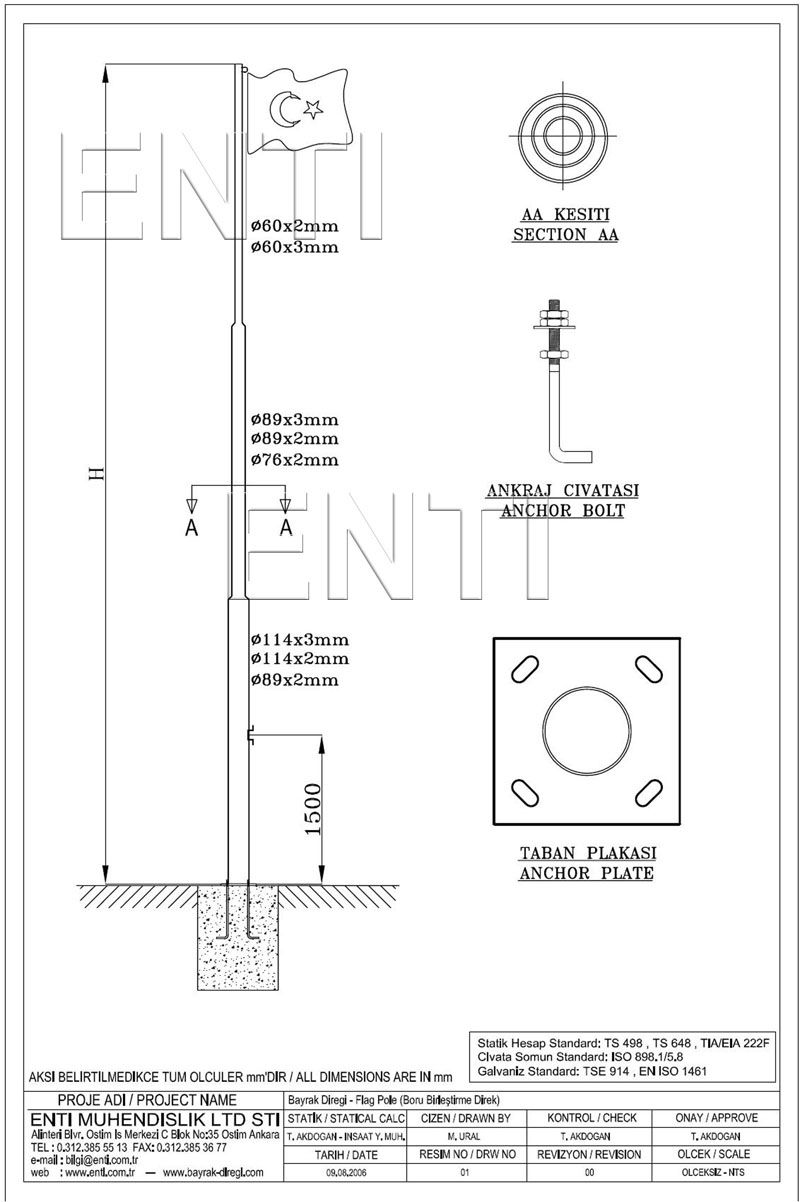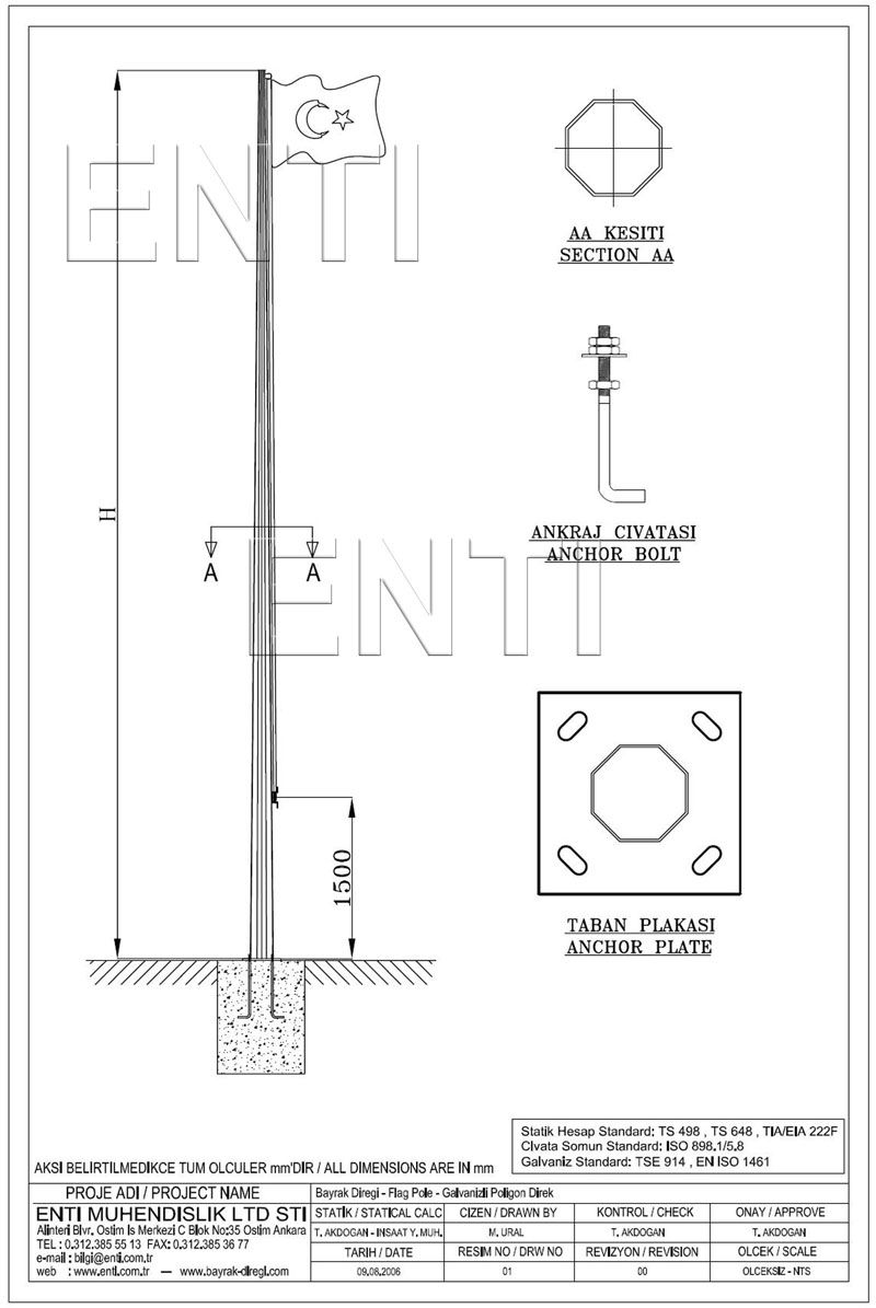Galvanizli Poligon / Boru Bayrak Direği
